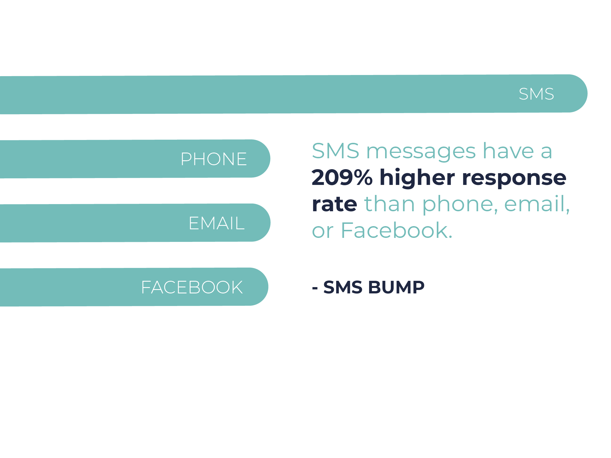 SMS messages have a 209% higher response rate than phone, email, or Facebook.