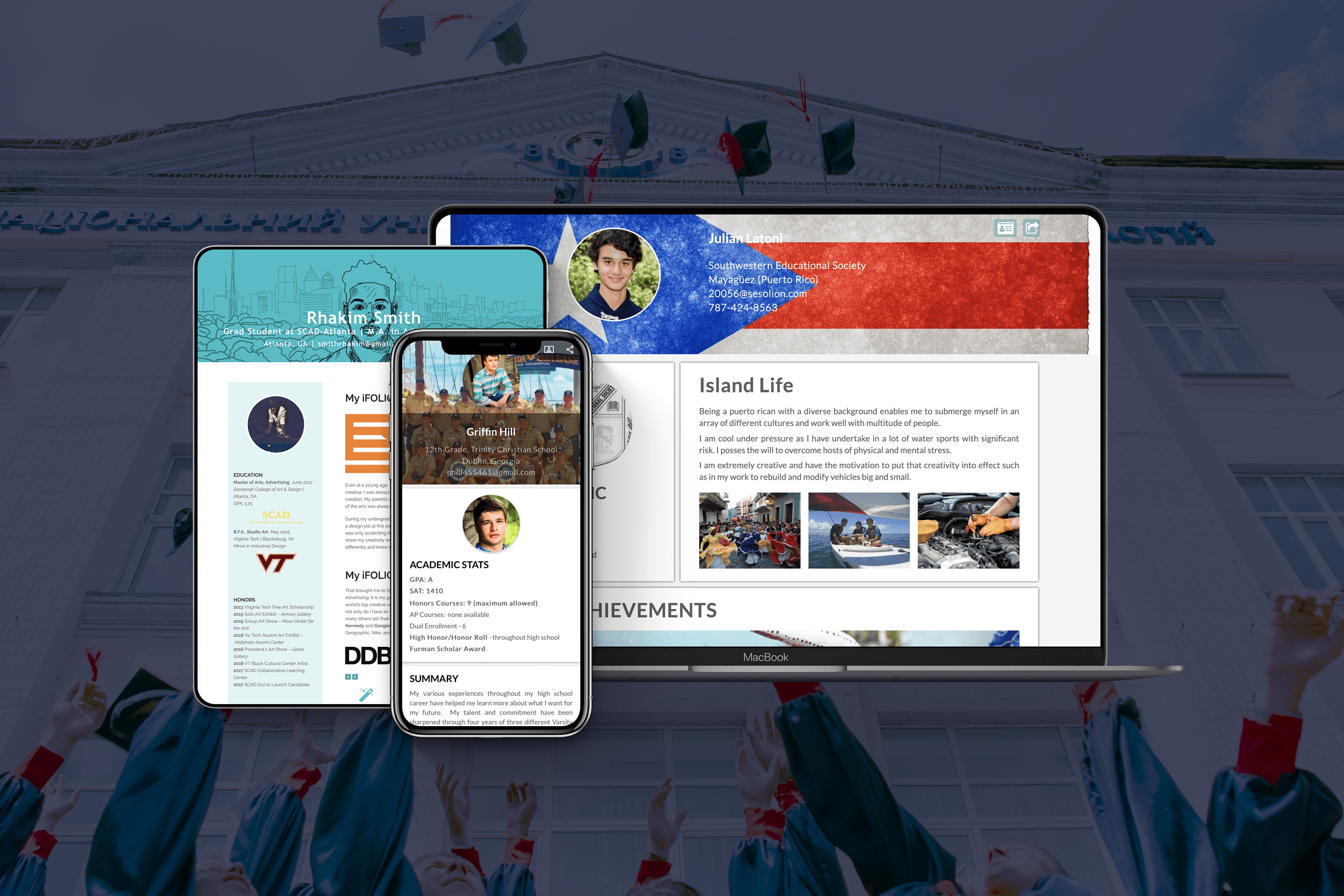 Students using iFOLIOS were admitted to Yale, John Hopkins, Cornell, Emory University, and many other illustrious schools and received $100,000 merit scholarship awards.